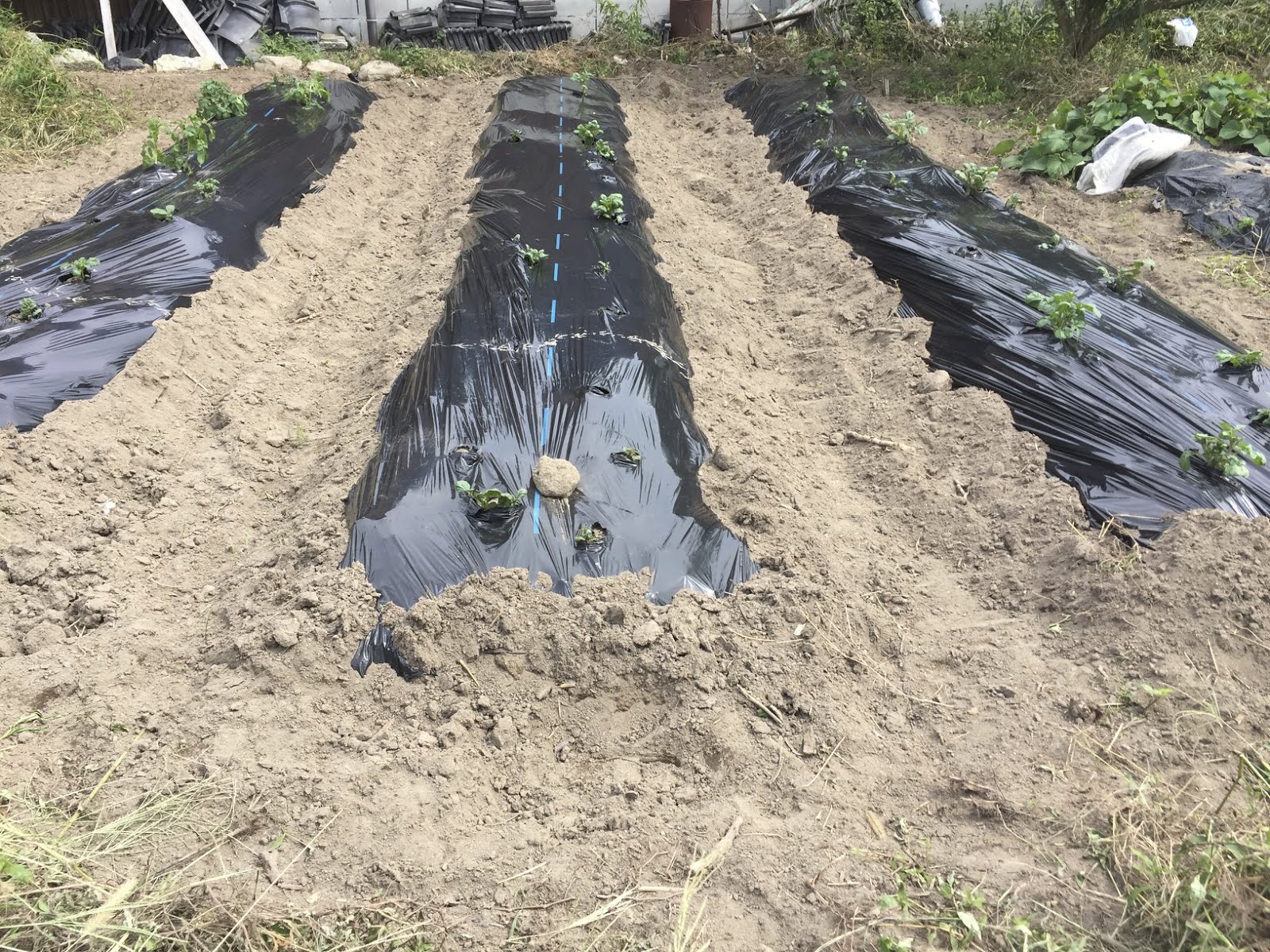 ちょっと面倒なやり方なのだが、今年は9月初めにマルチをかけない状態で種芋を植え、芽が出た後にマルチを掛けることにした。