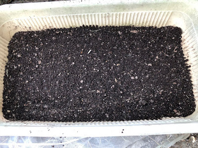 | ミミズ堆肥を混ぜた土に種をバラ蒔いた。 |
