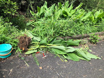 果樹園に寄った帰りは、側にあるウコンを一株、お茶用に収穫して帰った。