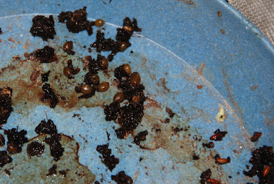 今後、ミミズ小屋の堆肥をチェックする時にはこの赤いサナギを見かけるようになるのかもしれない。B−29が多数飛び回るようになれば家人に不評を買いそうだが、サナギのうちに排除するより、上の写真のように孵化させて逃げれない状況をつくって退治する方が簡単だと思われる。