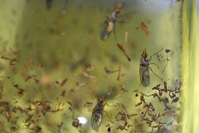 下の写真が飼育瓶の中で孵化させた小バエ。