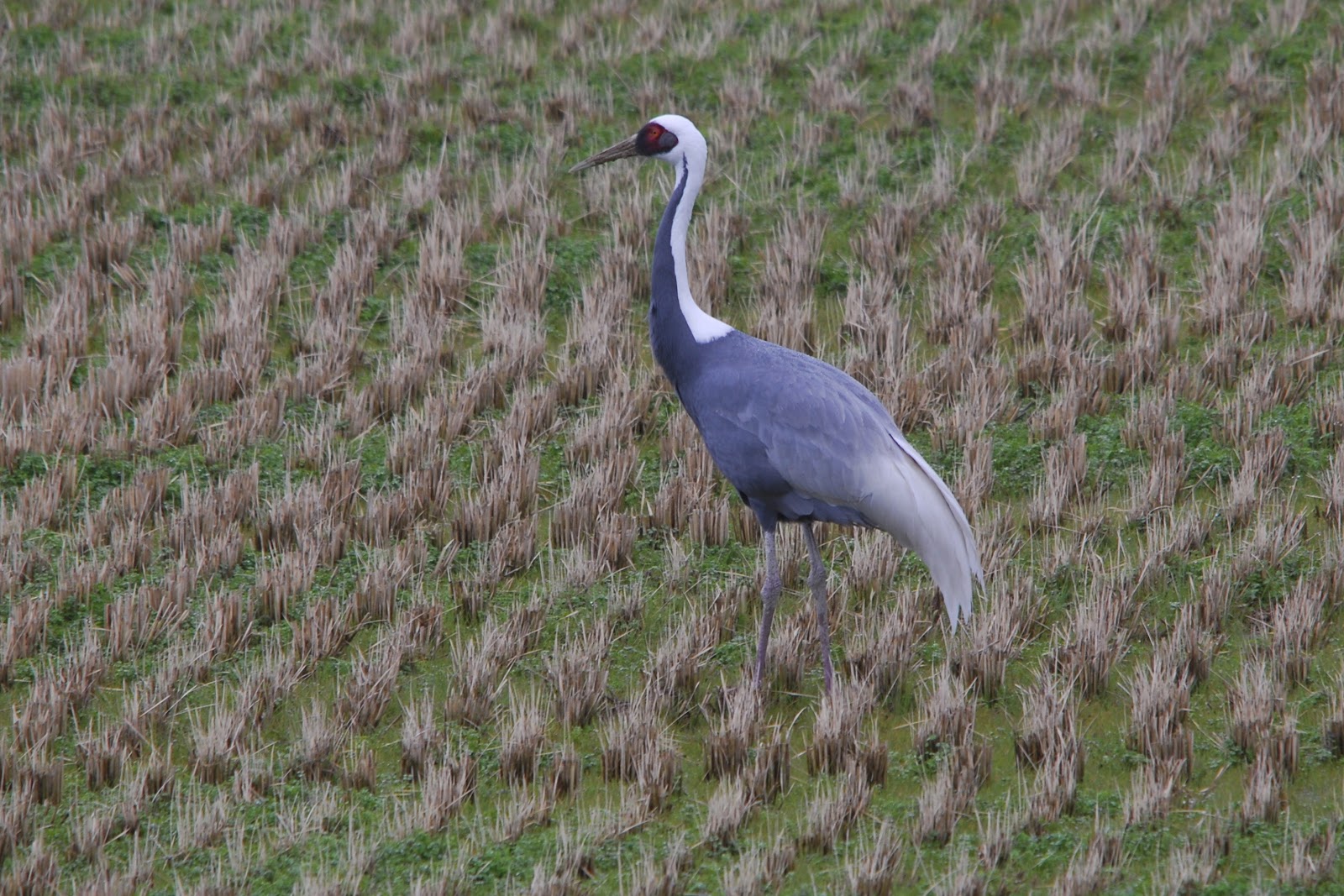 通りすがりに見つけ、遠くから携帯で写真を撮ったのでその容姿はあいまいだが、羽の色からしてナベ鶴で間違いないだろう。