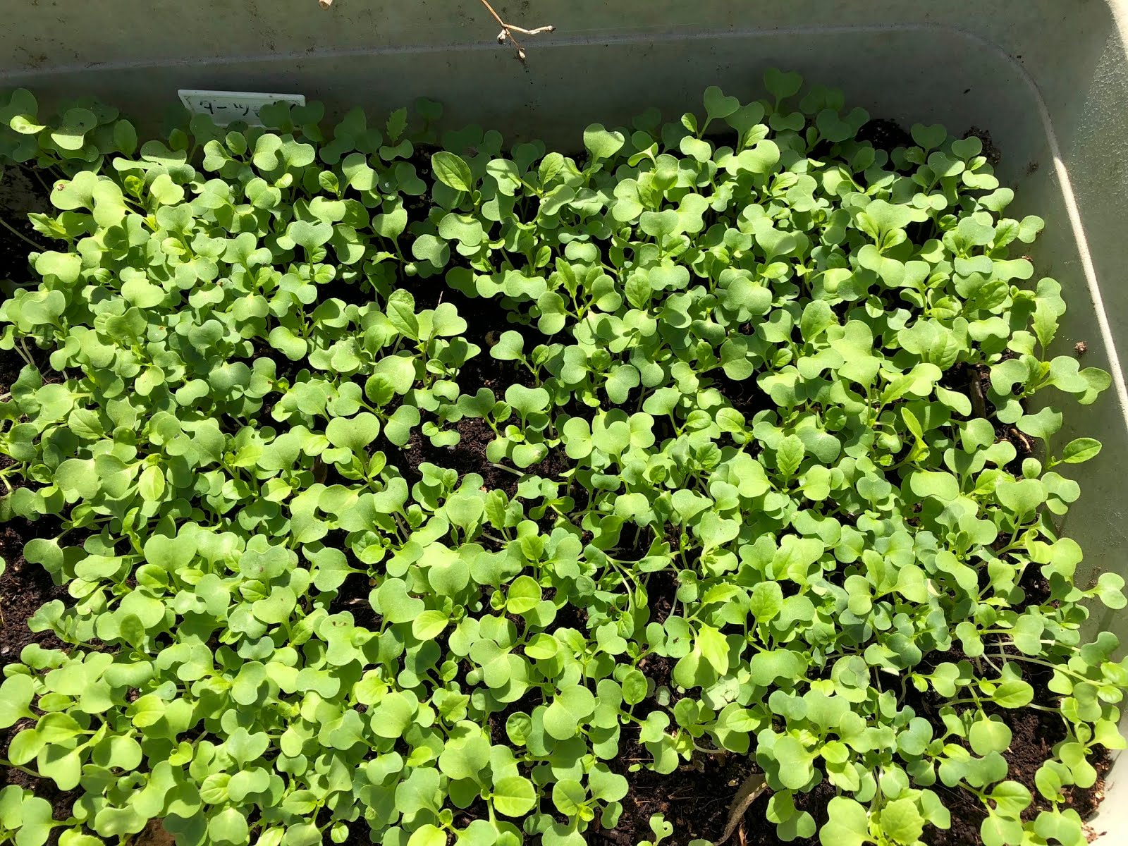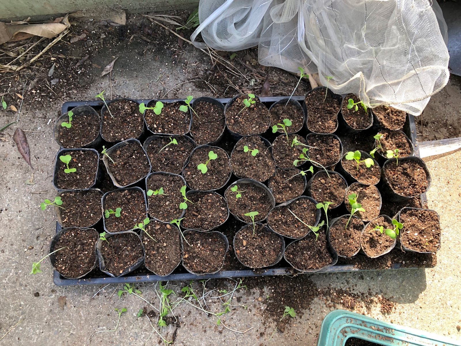 で、今日はまず葉野菜(ターツァイ)の小さな苗の移植を、防虫ネットのある場所とない場所でやってみた。