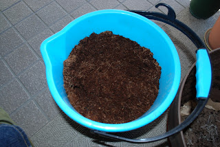 | ココナッツ繊維、ミミズ君、餌、を適度に重ねていきながら新しいミミズ小屋の出来上がりです。 このまま1ヶ月〜1ヶ月半ほど放置して、次の堆肥取りをします |