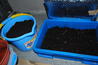 | 今日は室コン5号の堆肥取りです。室コン5号は金子みみずちゃんの家に2つのみみず小屋を作っている中の一つです。室コン5号は内容多く、半分チェックしたところで堆肥はバケツ一杯、みみずは約700匹救出しました1時間では仕事終わりませんでした。おそらく、最終的にバケツ2杯の堆肥収穫と、みみずは1200匹くらい救出できるのではと思っています。 |