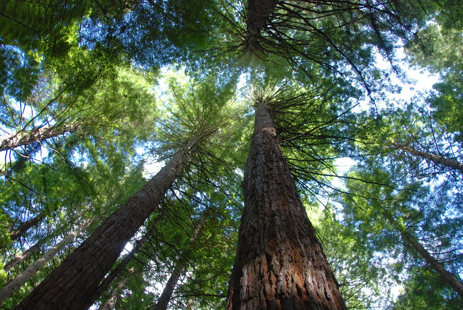 100年ちょっと前に実験的に植えられたカリフォルニア赤松が大きく育った森があり、それを取り囲むように、木製シダなどの自然林がある。