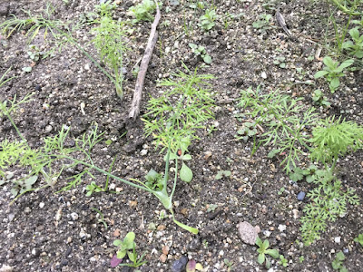 | 春に種を蒔いたものと比べて、極端に育ちが悪い。 同じ時期に種を蒔いたディルとも育ちは雲泥の差だ。 |