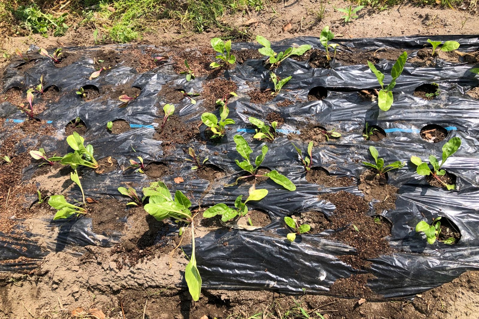 スイスチャードは、葉を1枚づつ収穫したので、畝に空き地が全くできていなかった。