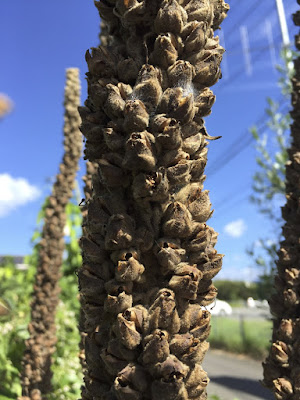 | 花壇で長い間楽しませてくれた、背の高い黄色い花は完全に枯れた。 結局、花の種類が分からないままだ。 |