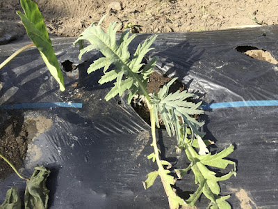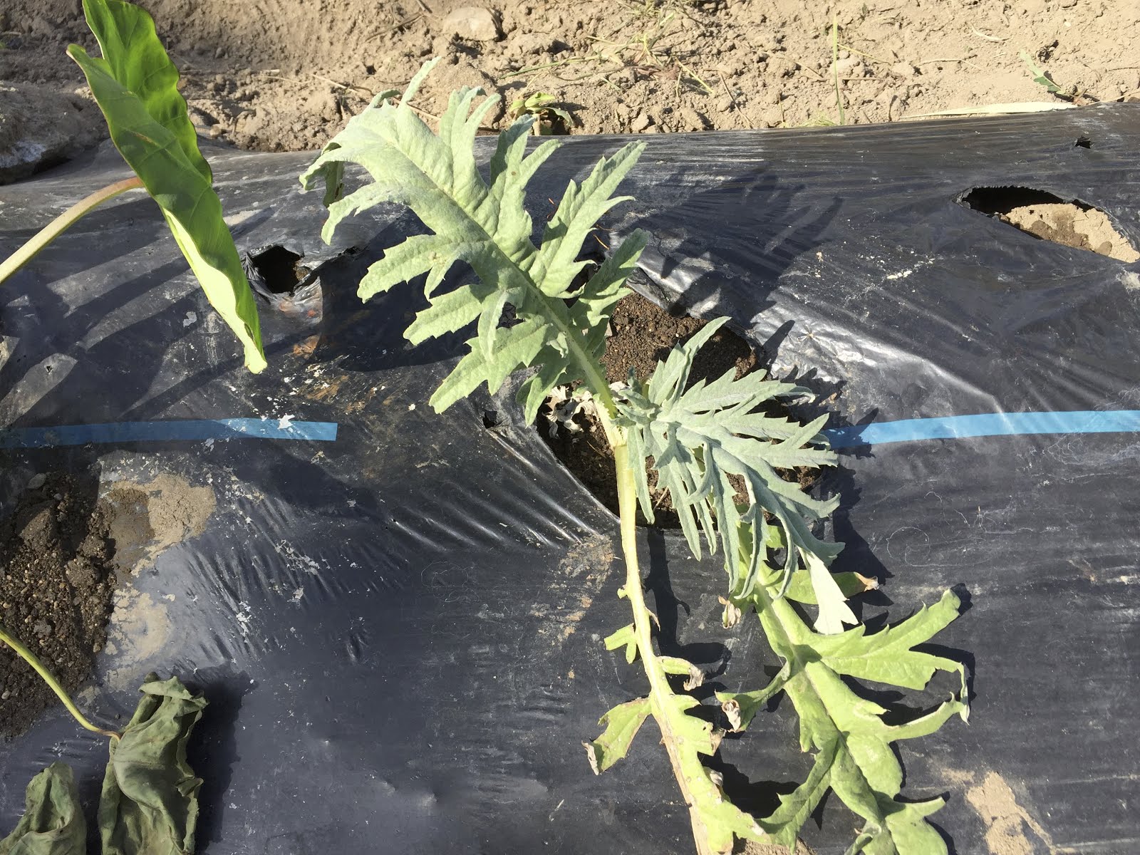 | ここは里芋を植えていて、うまく育たなかった畝。 ここの土がアーティチョークにあっているのだろうか? |