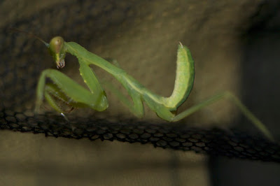 | カマキリは2cmほどの小さな体でも強そうに見える。 この時期に増えてくるカメムシを食べてくれると嬉しい。 |
